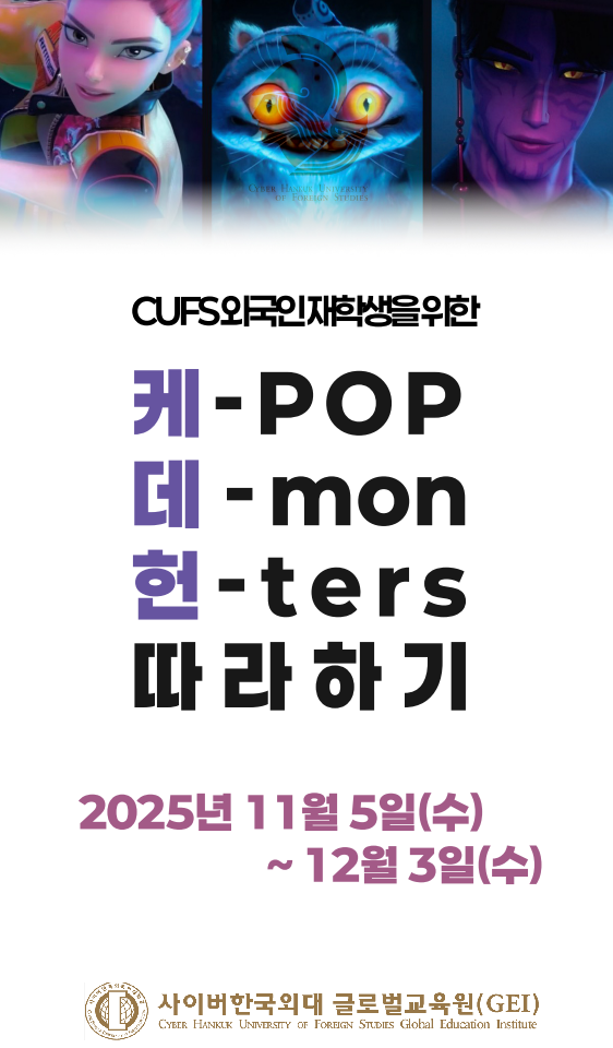 사이버한국외국어대학교 글로벌교육원에서는 외국인 유학생들이 한국 문화를 보다 생동감 있게 체험할 수 있도록 특별한 사진 콘테스트 「K-POP Demon Hunters 따라하기」를 개최합니다.